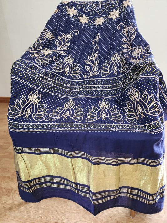 Blue Bandhani Print Gaji Silk Dupatta With Gota Patti, Aaree Work & Zari Border