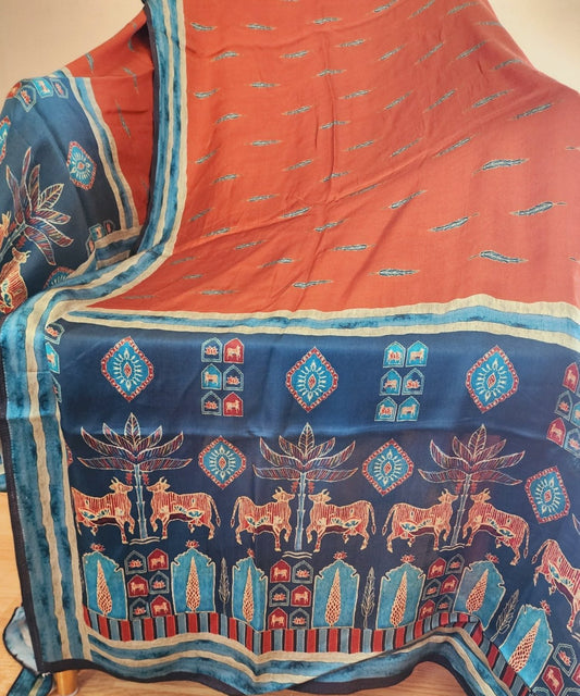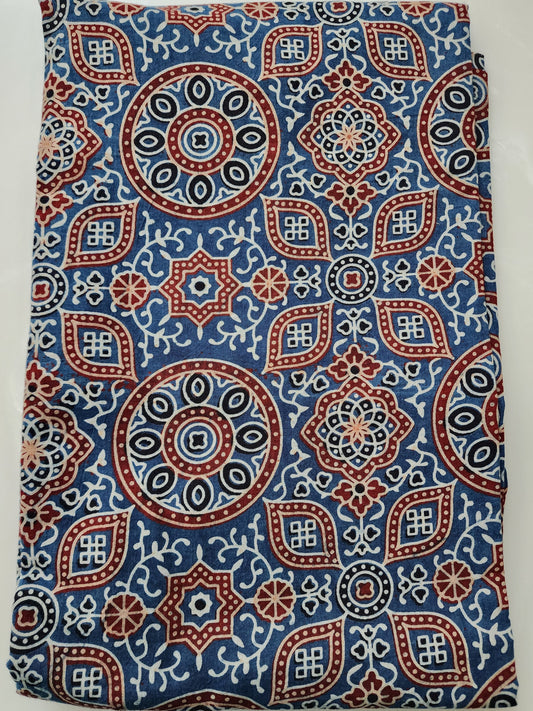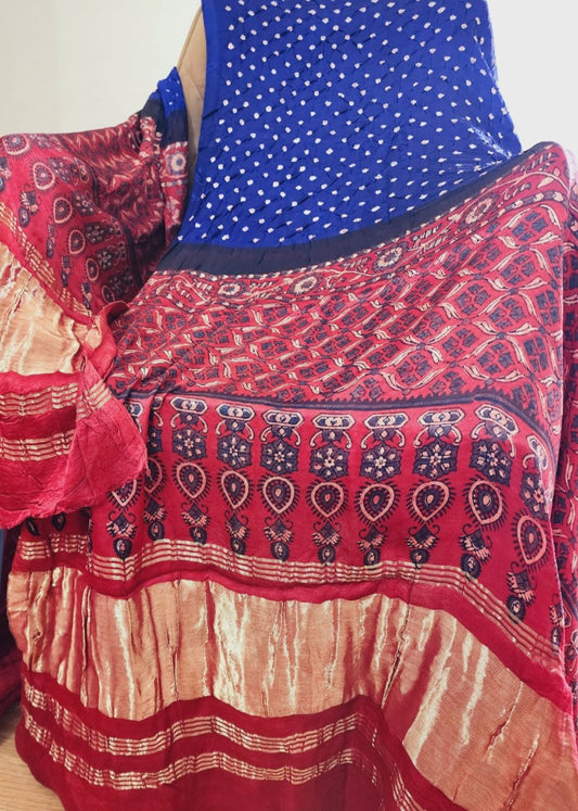 Indigo Blue & Rust Dual Shade Fusion Bandhani & Ajrak Dupatta in Modal Silk Dupatta