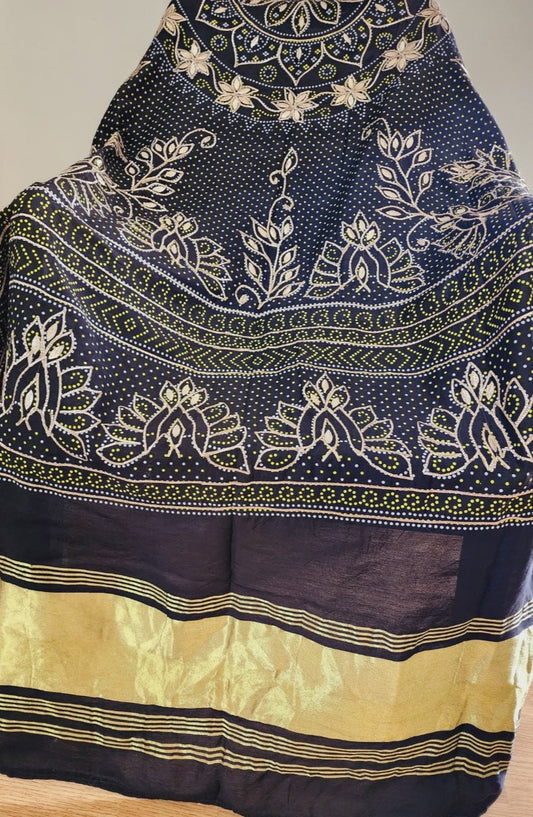 Black Bandhani Print Gaji Silk Dupatta With Gota Patti, Aaree Work & Zari Border
