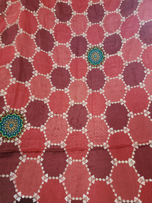 Green & Rust Dual Shade Fusion Bandhani & Ajrak Dupatta in Modal Silk Dupatta