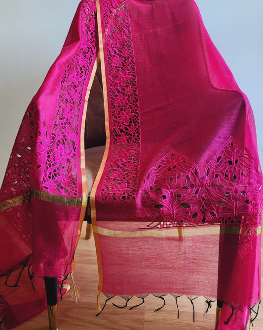 Magenta Baatik Premium Cotton Silk Kurta & Dupatta with Shantoon Bottom