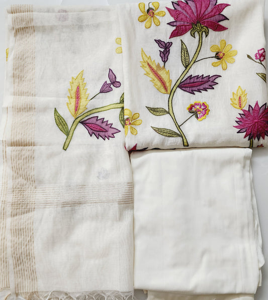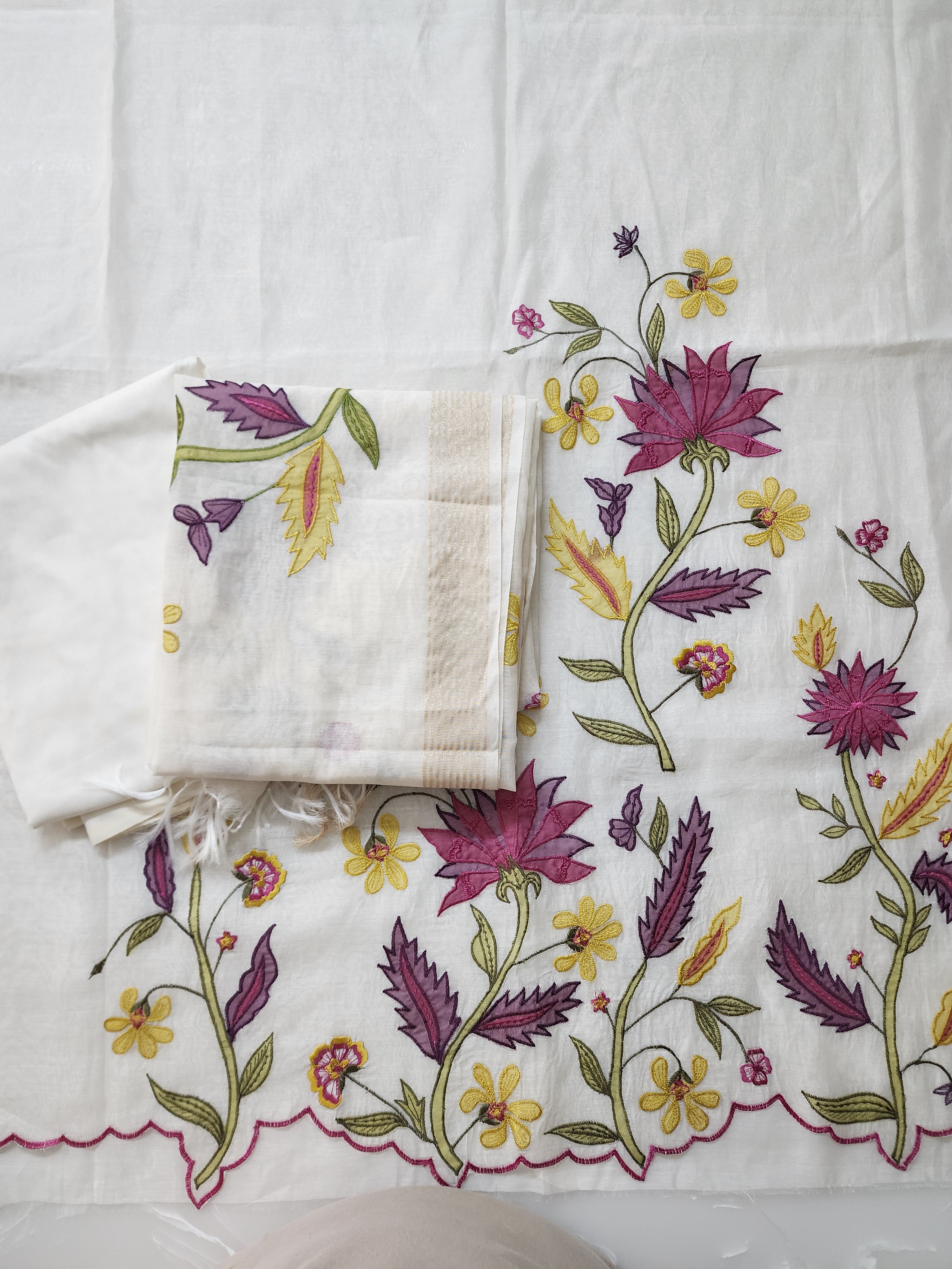 Off White Pure Mul Cotton Kurta Set with Dupatta Featuring Elegant Floral Applique Work