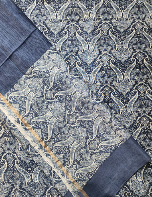 Blue Indigo Maheshwari Kurta Set With Dupatta In Paisley Design & Shantoon Bottom