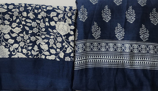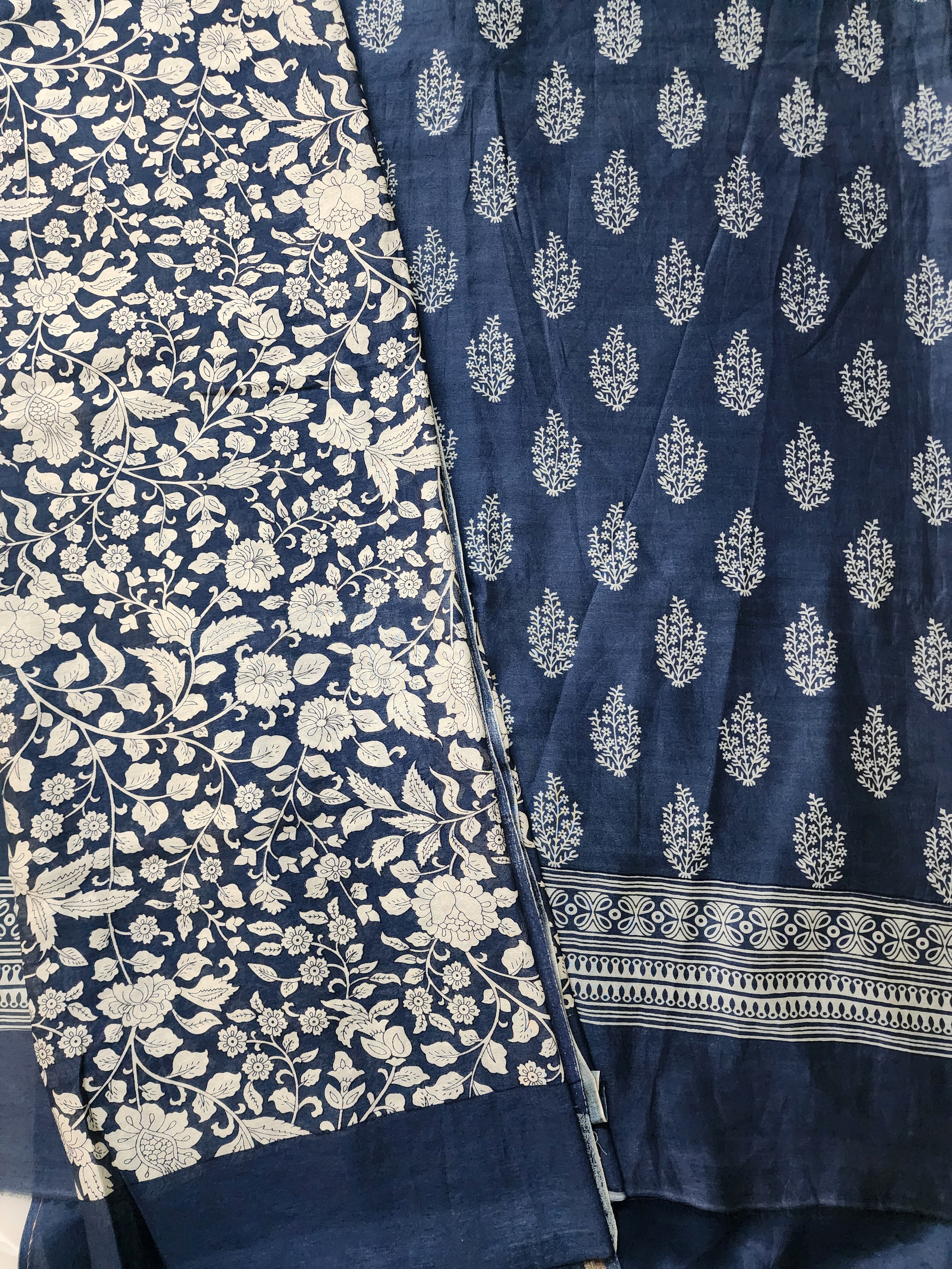 Blue Indigo Maheshwari Kurta Set With Buta Motif, Floral Dupatta & Shantoon Bottom