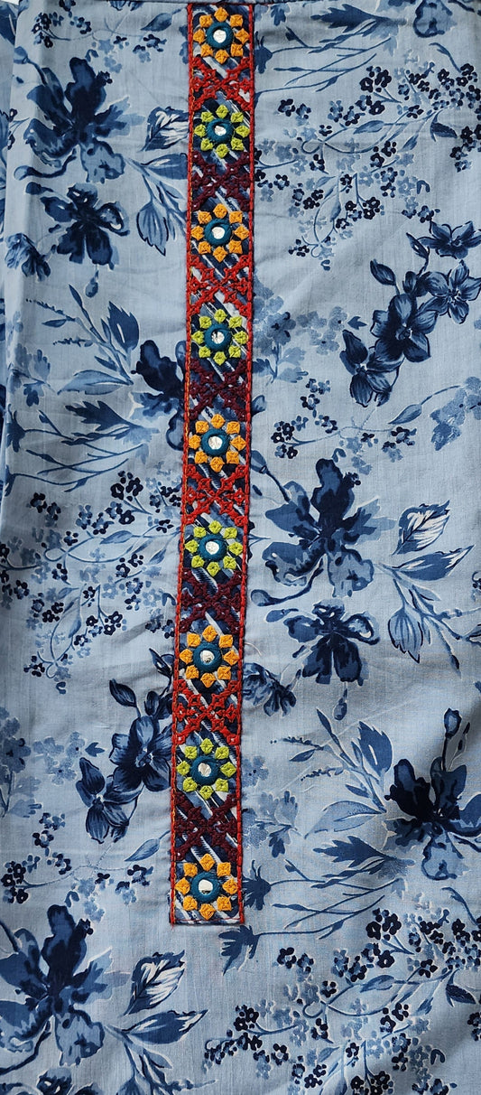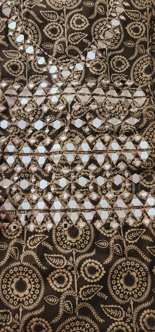 Brown Mirror Work Cotton Printed Kurta Set With Mul Cotton Dupatta & Printed Cotton Bottom