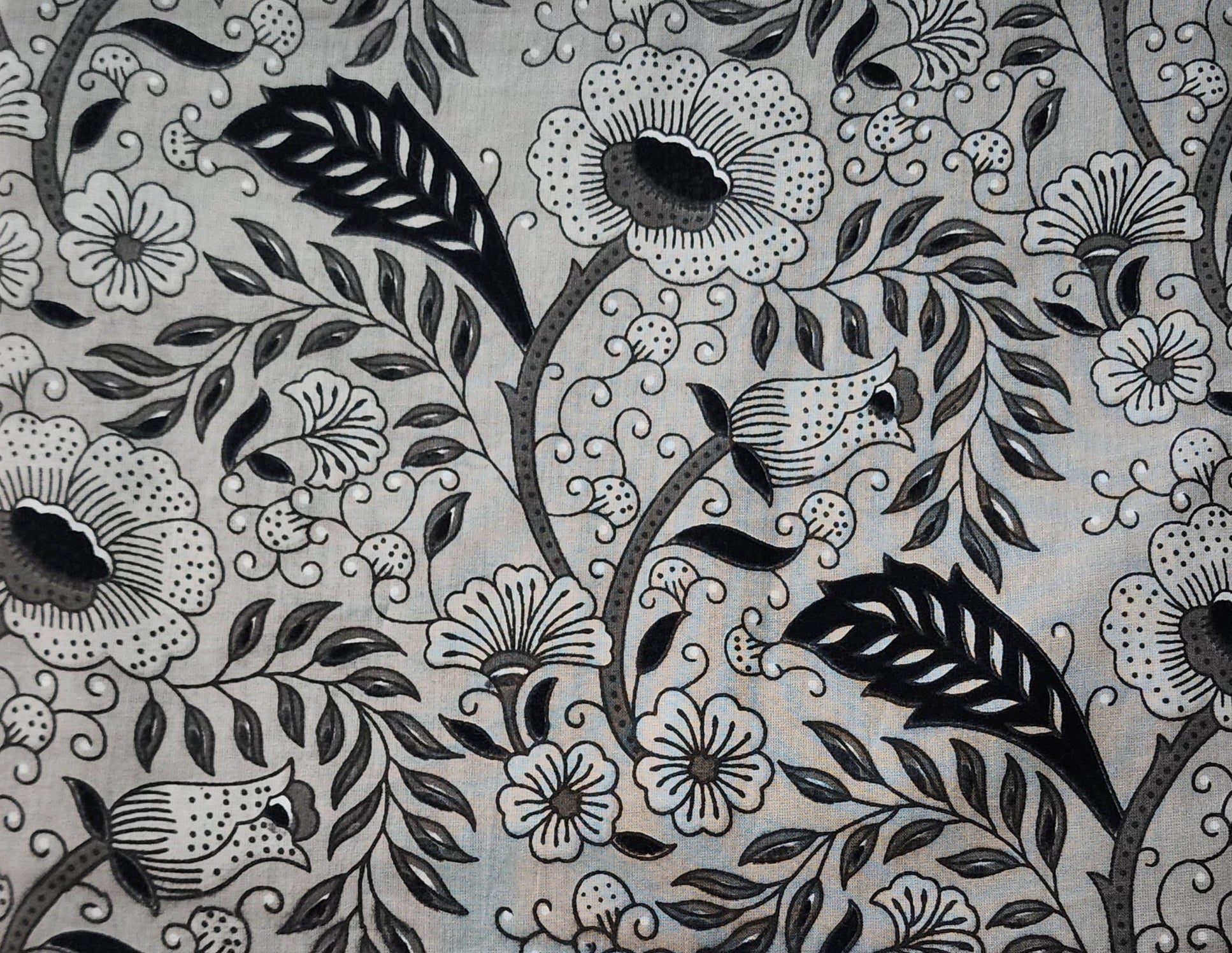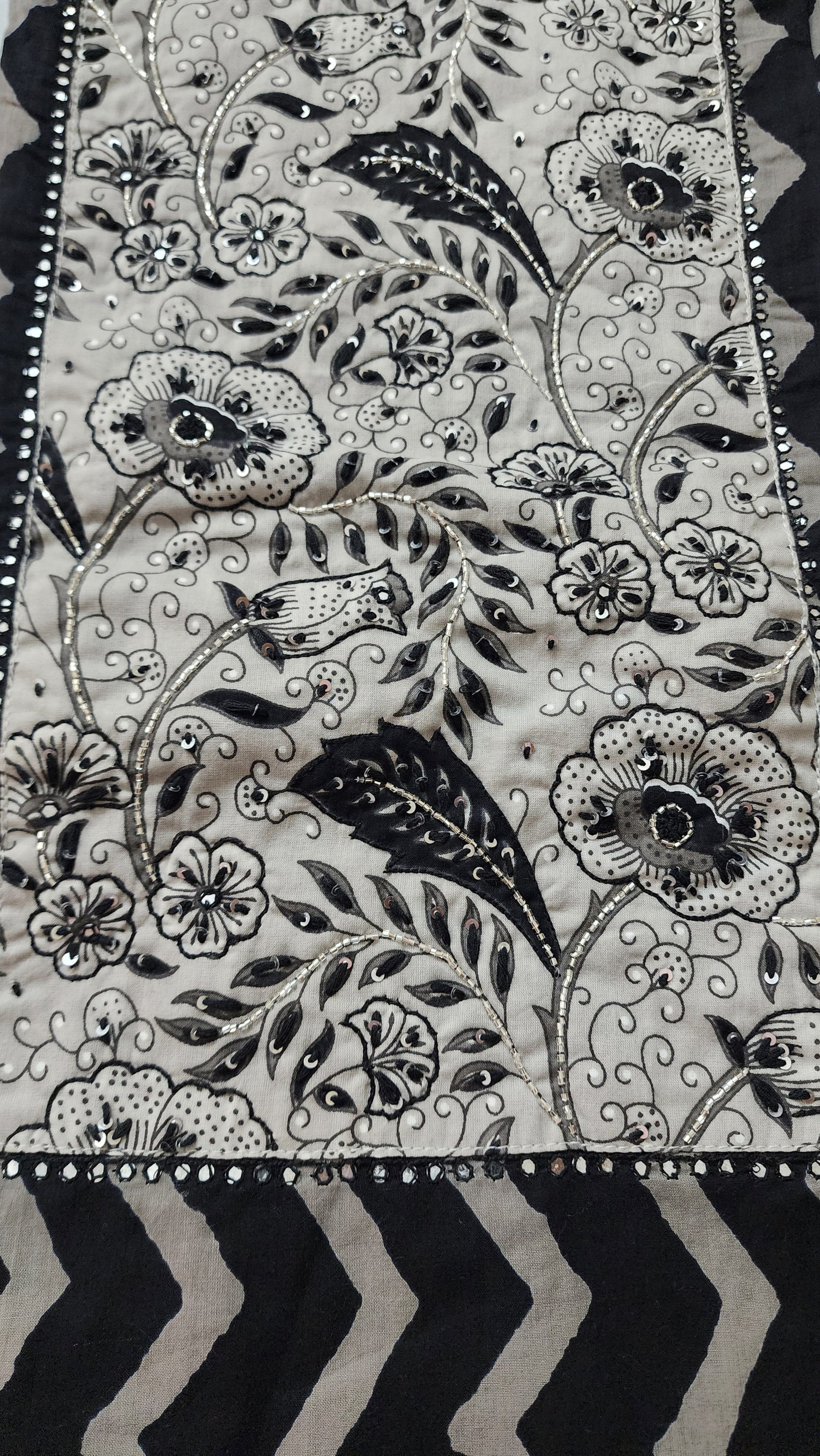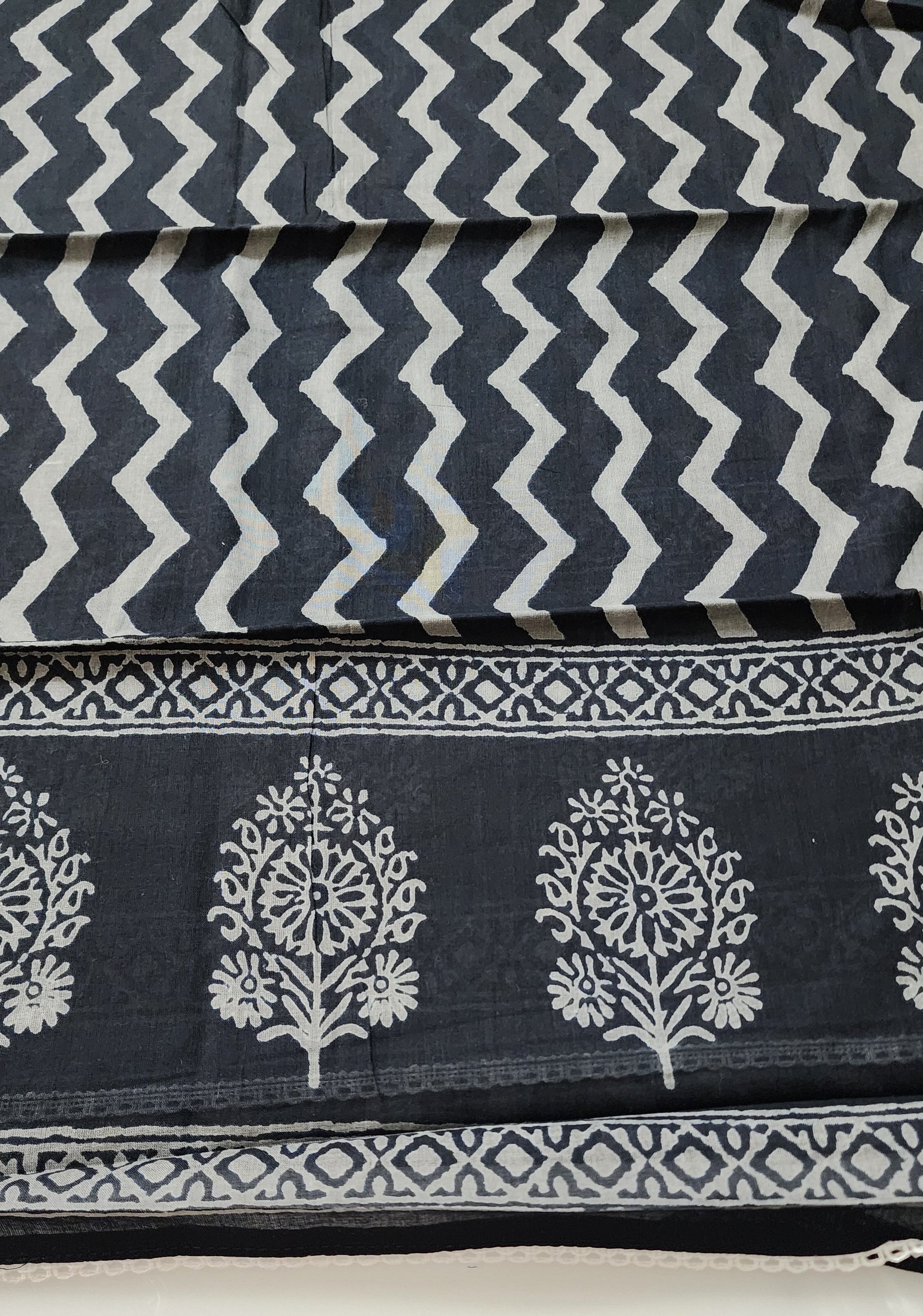 Black & Grey Cotton Printed Kurta With Embroidered Yoke And Mul Cotton Dupatta