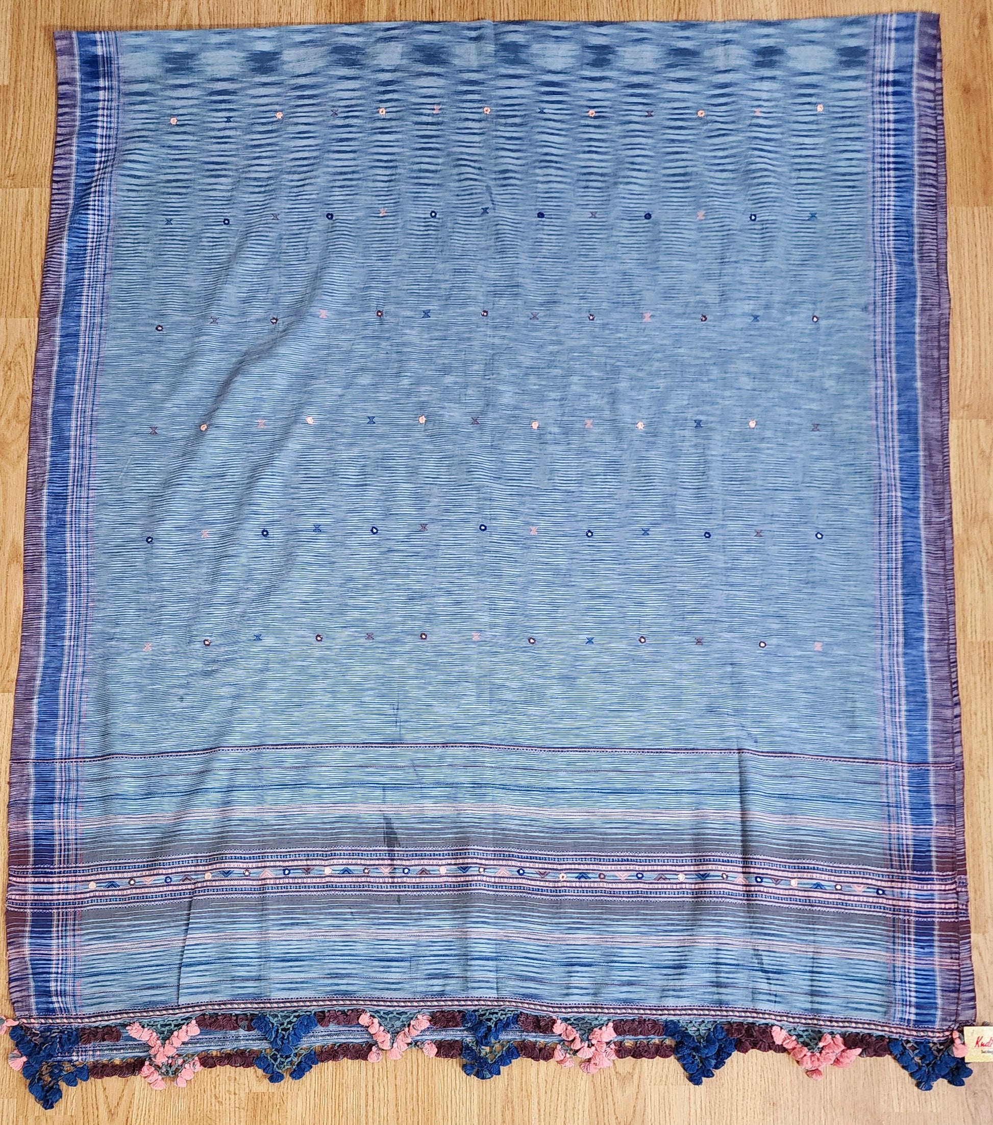 Blue Handwoven Bhujodi Dupatta with Tassels