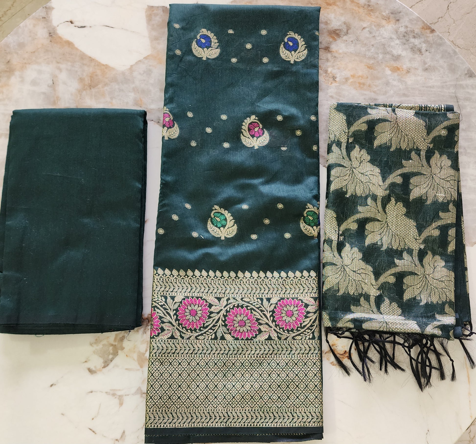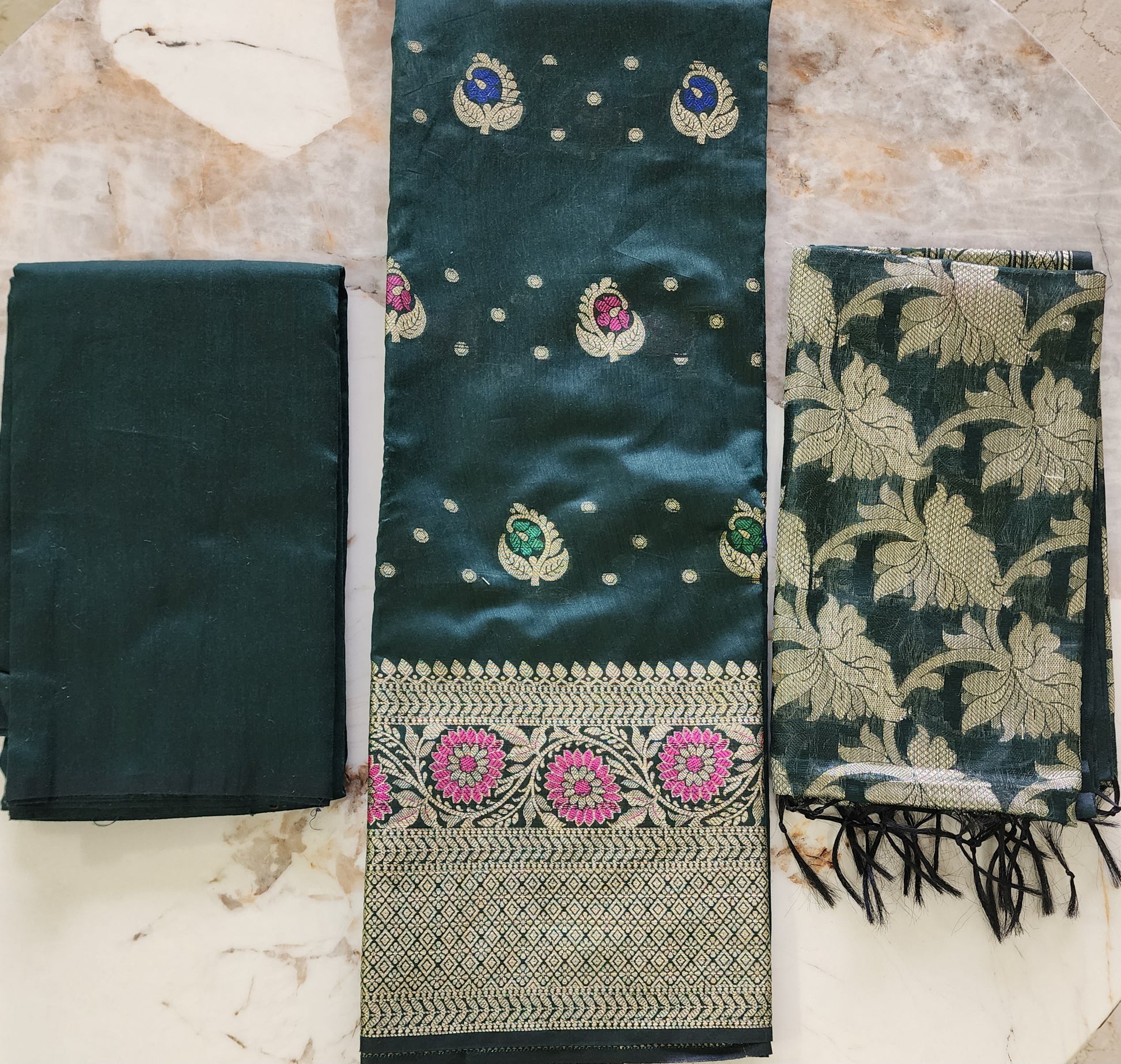 Green Dual Shade 3-Piece Kurta Set in Chanderi Cotton