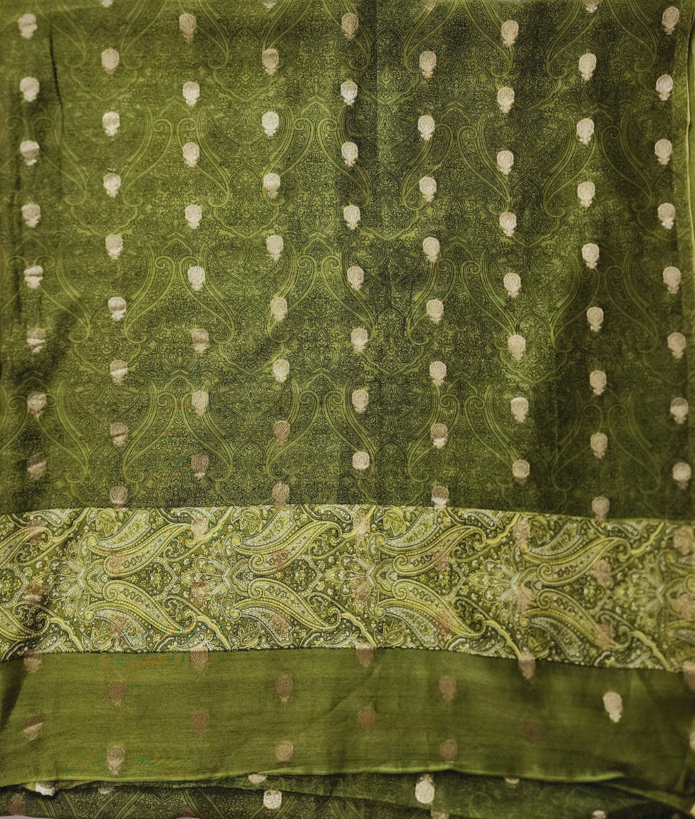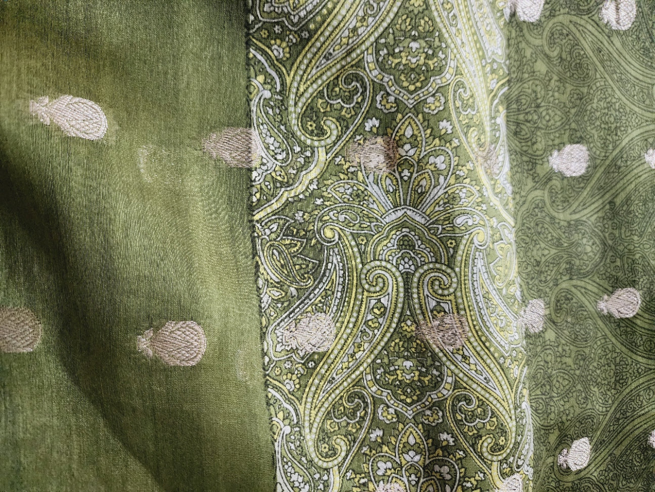 Elevate your wardrobe with this exquisite Green Munga Silk 3-piece Kurta Set, a perfect blend of sophistication and comfort. Crafted from luxurious Munga silk, known for its rich texture and natural sheen, this set brings timeless elegance to your collection. The kurta features intricate Zari buta detailing in both back & front of kurta fabric, adding a touch of traditional opulence.