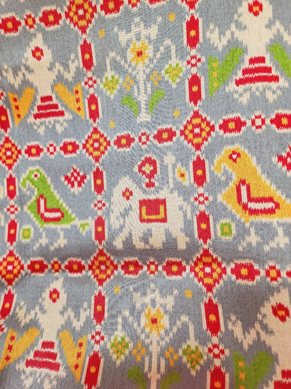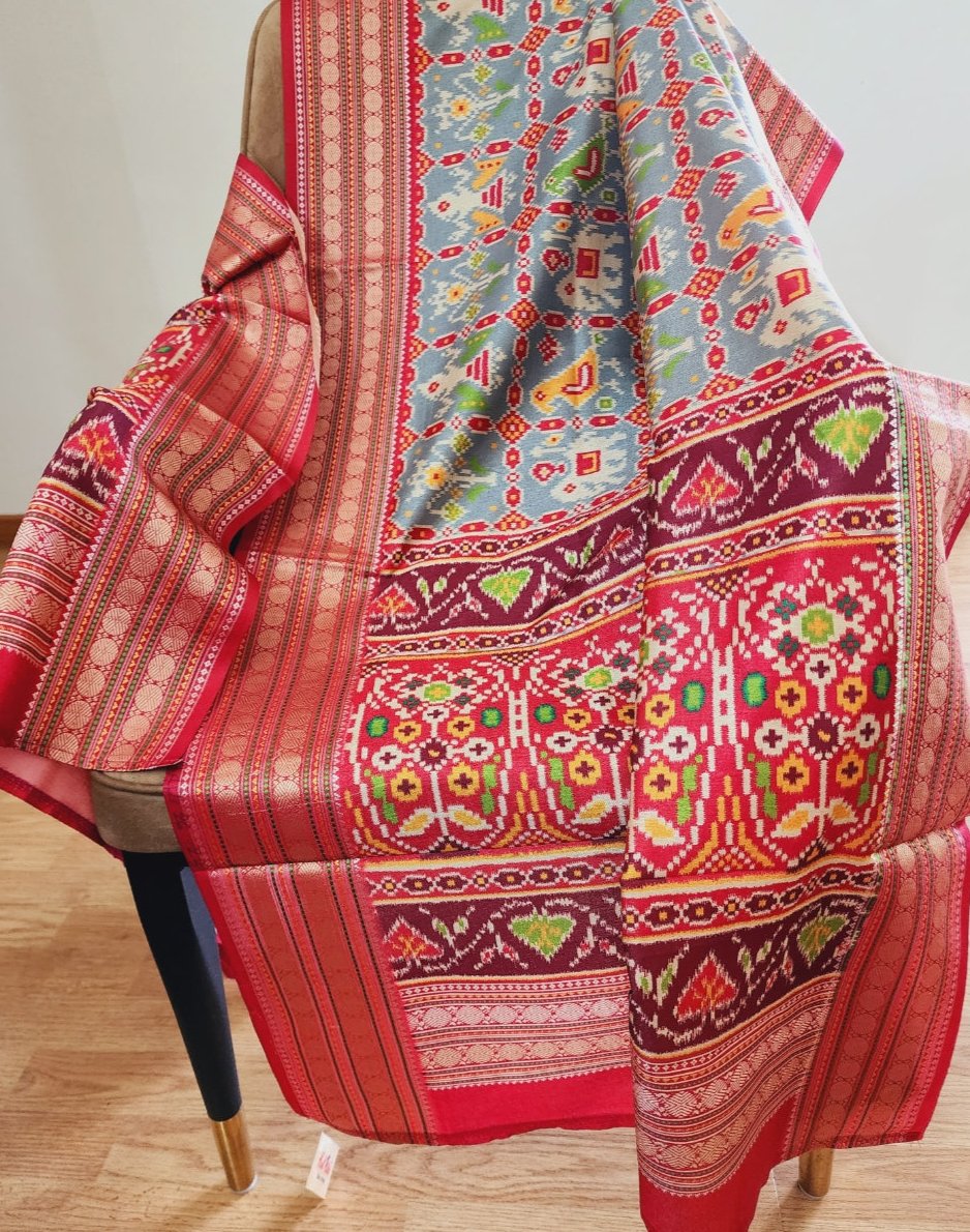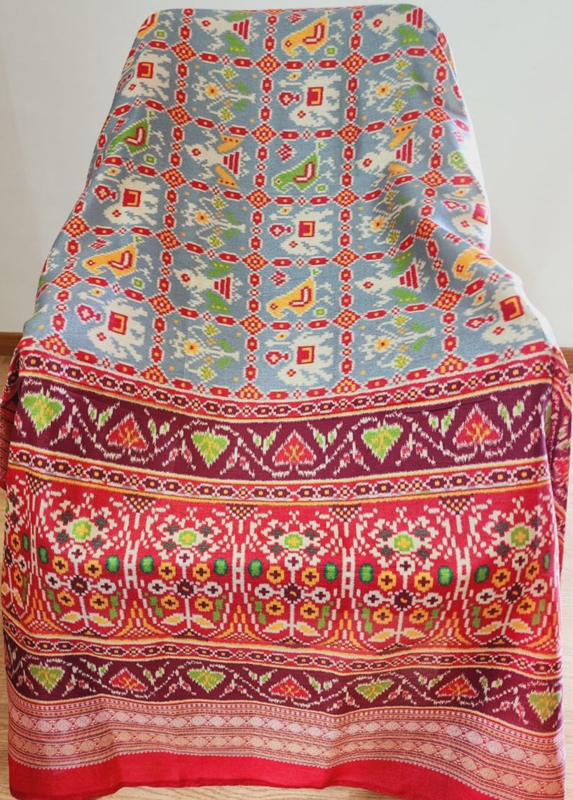 - A unique fusion of Kalamkari hand-painted prints and Patola-inspired borders