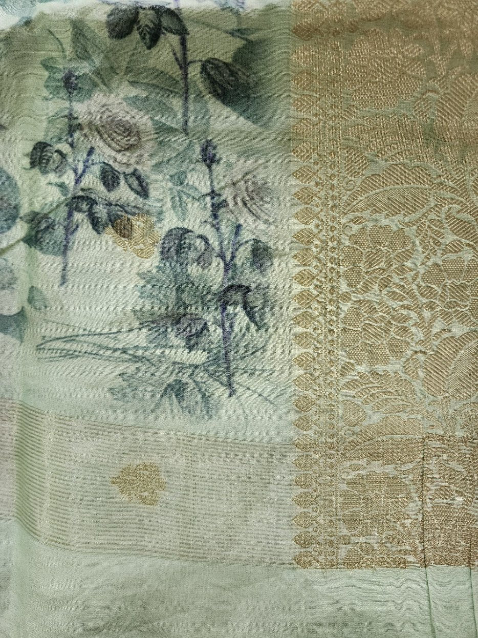 Light Green Zari Kurta Set In Silk With Digital Dupatta