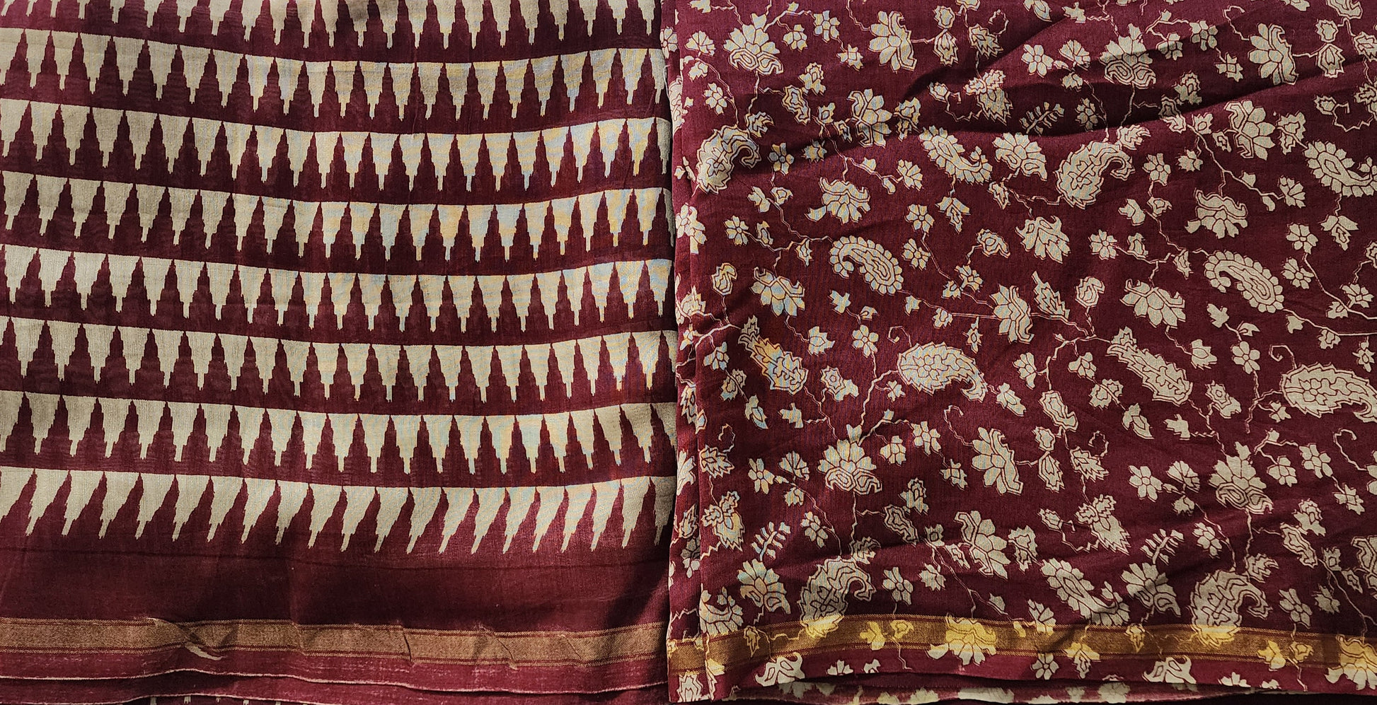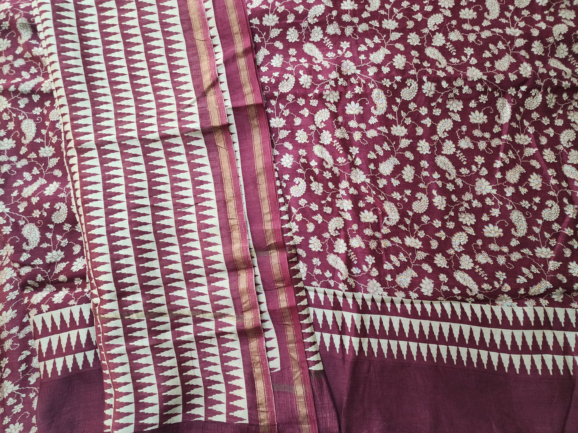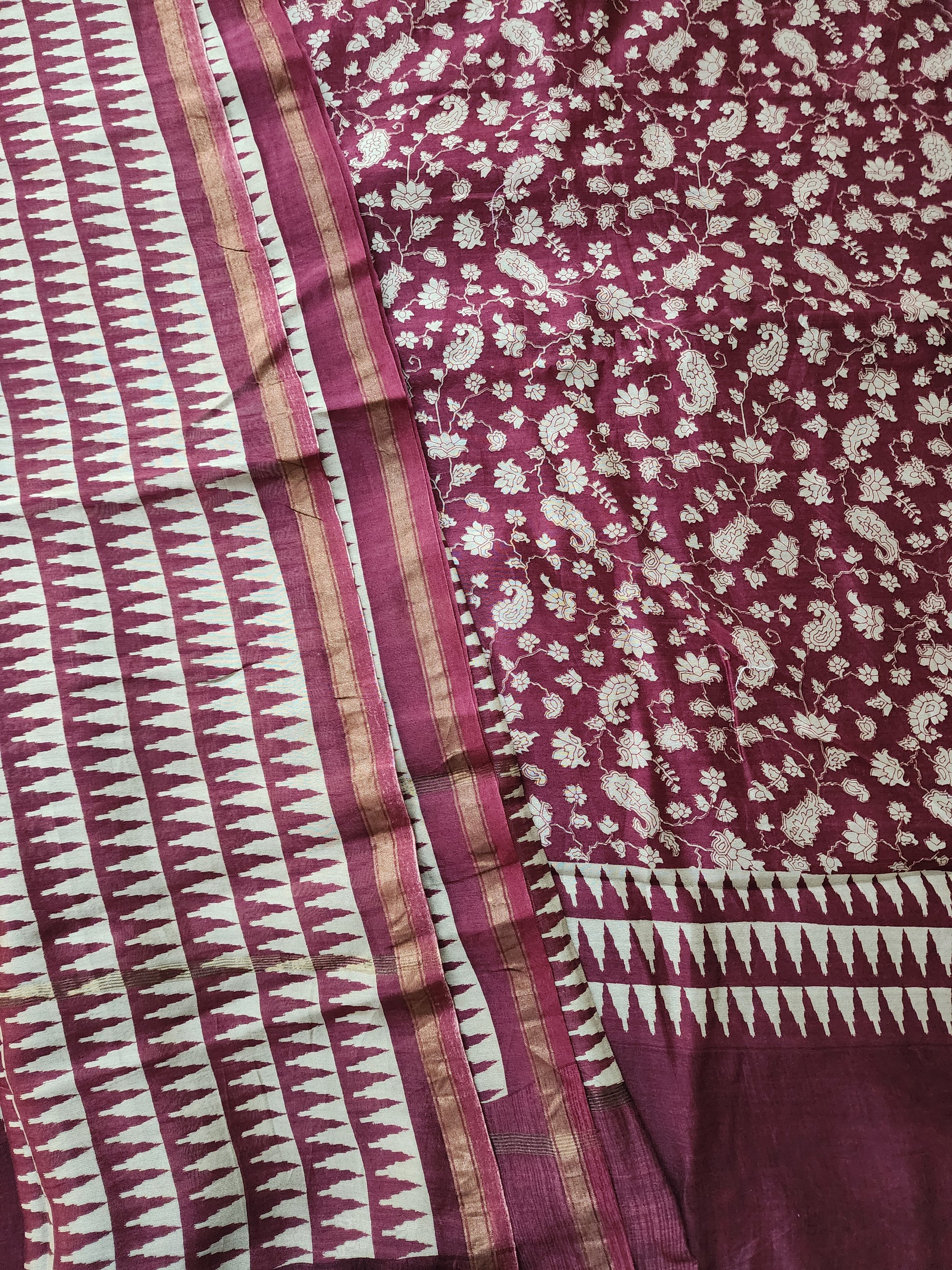 Maroon Maheshwari Paisley Kurta with Geometric Print Dupatta & Shantoon Bottom