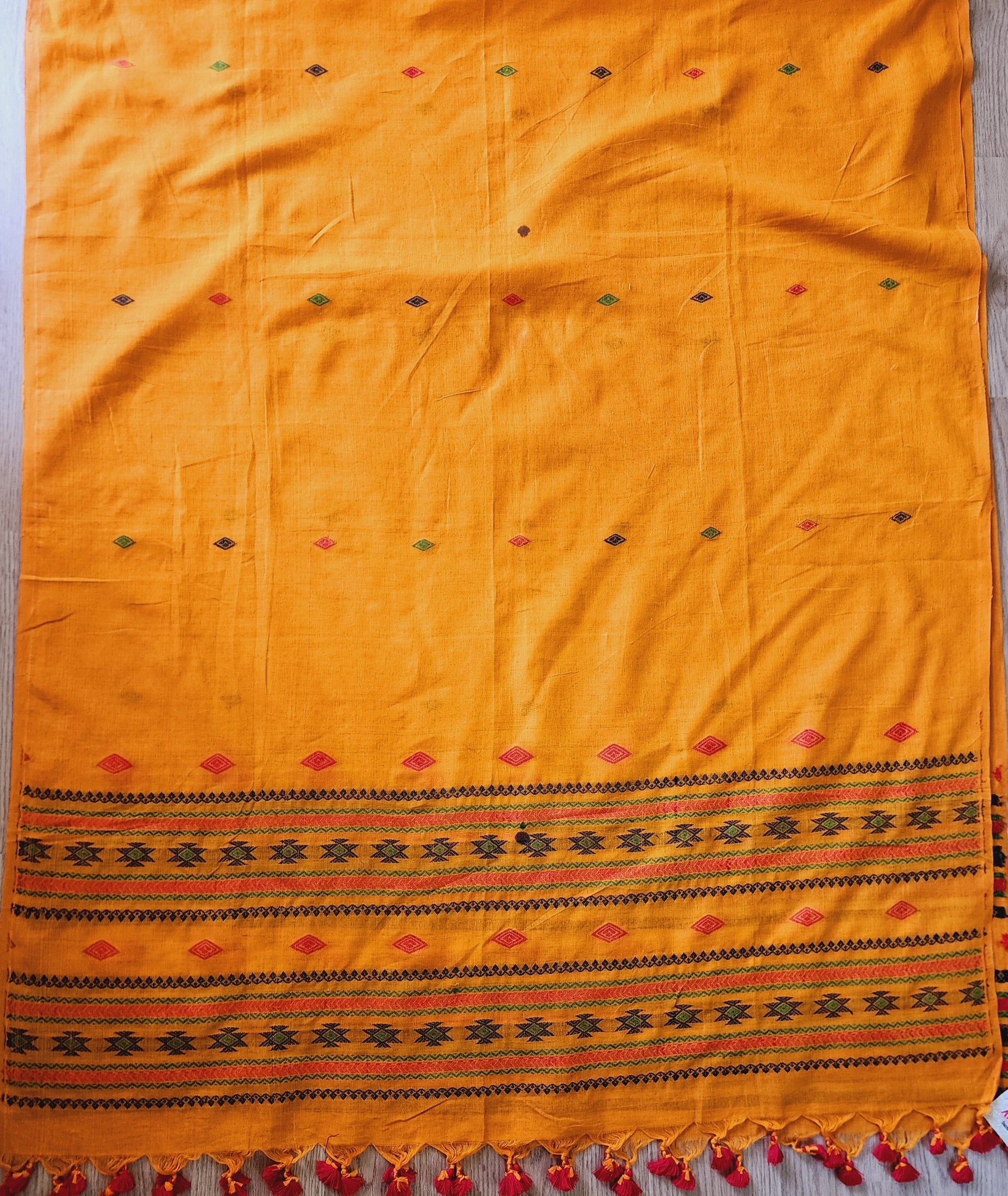 Mustard Yellow Handwoven Handloom Cotton Dupatta With Tassels