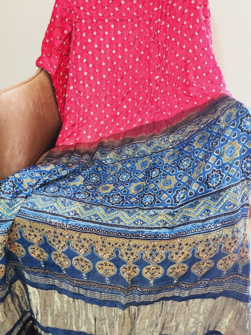 Design - Unique dual shade with Bandhani and Ajrak fusion