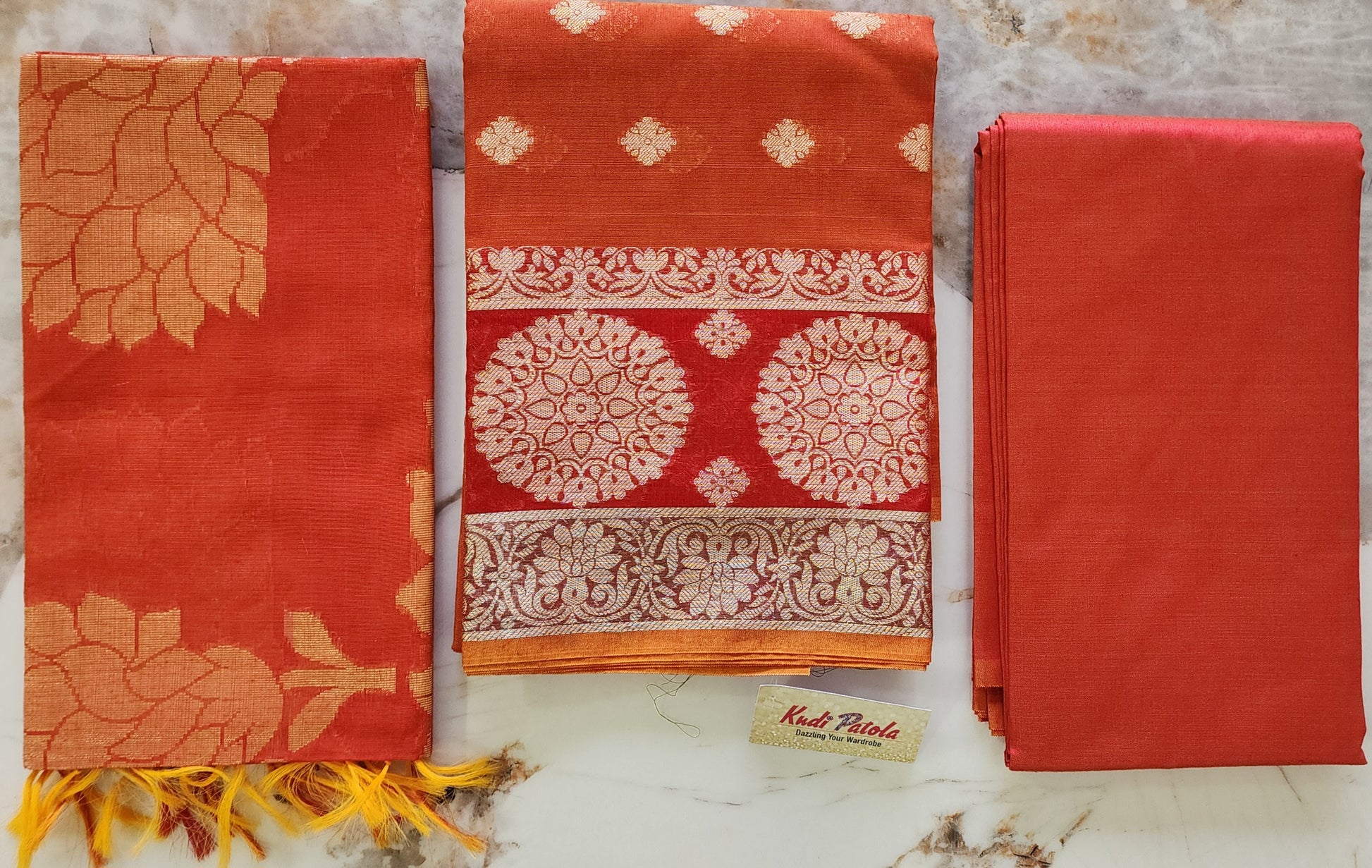 Elevate your ethnic wardrobe with our Rust Red Chanderi Unstitched Kurta Set, a beautiful blend of tradition and modern elegance. Crafted from luxurious Chanderi fabric, this set exudes a soft sheen and lightweight grace that's perfect for festive occasions, intimate gatherings, or elegant daywear.